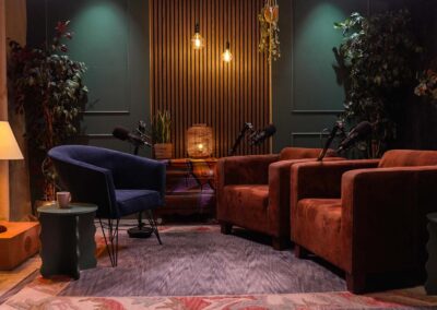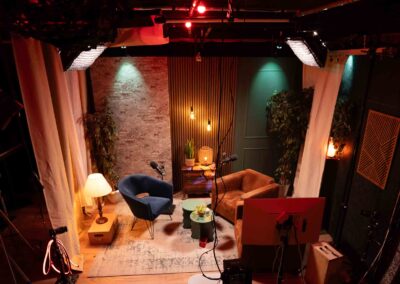 In onze sfeervolle, professionele studio werken we met flexibele settings en denken we mee van concept tot publicatie. Of het nu gaat om een podcast, webinar, talkshow of explainer video: één opname levert eindeloze contentmogelijkheden op. Naast een langere hoofdvideo creëren we ook korte fragmenten voor sociale media.